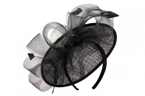 Sinamay Saucer mit Feder und Crinal-Schleife