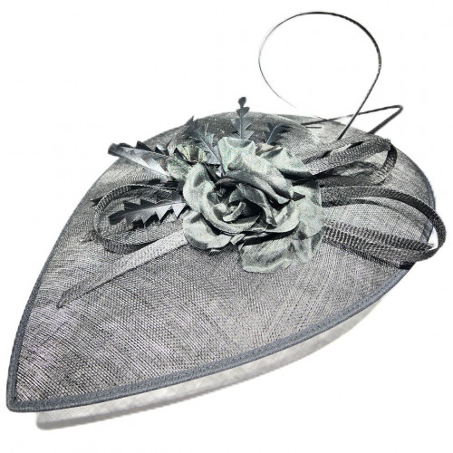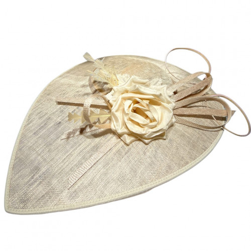 Sinamay Saucer mit Feder und Crinal-Schleife